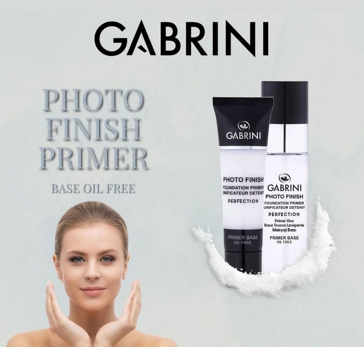 برند محبوب گابرینی Gabrini، پرایمری با نام فوتو فینیش PHoto Finish را تولید کرده است.این پرایمر تاثیر مات دارد و باعث میشود که پوست قبل از زدن کرمپودر مات شده و کرمپودر بهتر روی آن بنشیند.درواقع مات بودن پرایمر چربی زیاد پوست را میگیرد و اجازه برق افتادن یا چرب شدن زودهنگام پوست را نمیدهد. همین امر به ماندگاری بیشتر آرایش کمک زیادی میکند. از طرفی پرایمر گابرینی به کوچک شدن و بستن منافذ پوست هم کمک میکند. همین باعث میشود که کرم پودر نمای بهتری روی پوست داشته باشد و کاملاً صاف و یکدست شود
